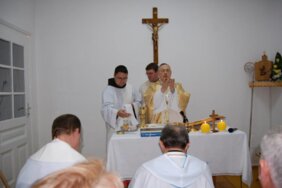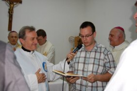 Prije blagoslova prisutnima se obratio g. Ferrario koji je izrazio svoju veliku radost zbog toga događaja istaknuvši kako domaćini zahvaljuju Svjetskoj obitelji i Radio Mariji Švicarske na darovima a Svjetska obitelj zahvaljuje djelatnicima hrvatske Redakcije Radio Marije Srbije na suradnji i što podržavaju i šire karizmu Radio Marije.