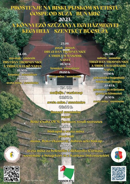 Proslavu proštenja na Biskupijskom svetištu Gospe od suza na Bunariću u Subotici, pratimo prijenosima od subote, 26. kolovoza i u nedjelju 27. kolovoza. Prijenos sa svetišta moguće je pratiti preko svih frekvencija.